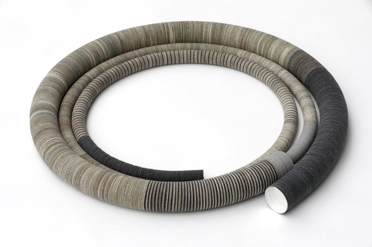 The Irish landscape lies at the core of my practice, inspiring a quiet subtlety that shapes both form and material. I am drawn to organic structures, natural patterns, repeated textures, and the delicate tonal shifts that mirror the rhythms of place. Through my signature technique of layered paper, I combine hand-dyed sheets with other materials, creating contrasts that speak of fragility and resilience. My armpieces and neckpieces are minimal in form, their muted colours reflecting the tonal variations of land, sea, and stone. This collection invites reflection on conservation, sustainability, and cultural value while celebrating beauty in the everyday. The titles are drawn from a tombola and a special conservation area in Kerry, which continues to deeply inform my work.