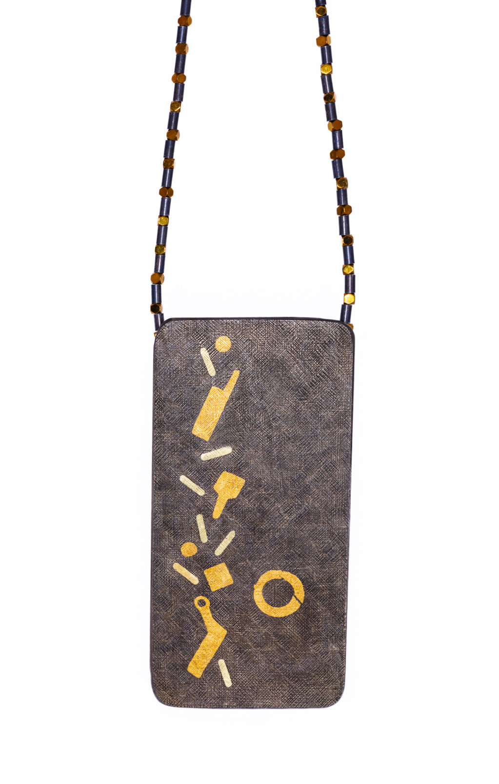 Shibuichi, fine gold, 18ct green gold, sterling silver, and electroplated hematite beads and recycled sterling silver.