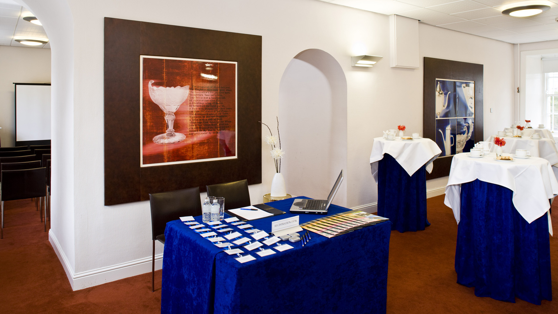Its versatile layout makes it ideal for a variety of uses: it can serve as a welcoming registration area, a breakout space, or a comfortable spot for light refreshments when paired with the adjoining Palatine Room. Equally, it functions beautifully on its own for smaller, more focused meetings, providing a warm and inviting atmosphere that encourages conversation and connection.