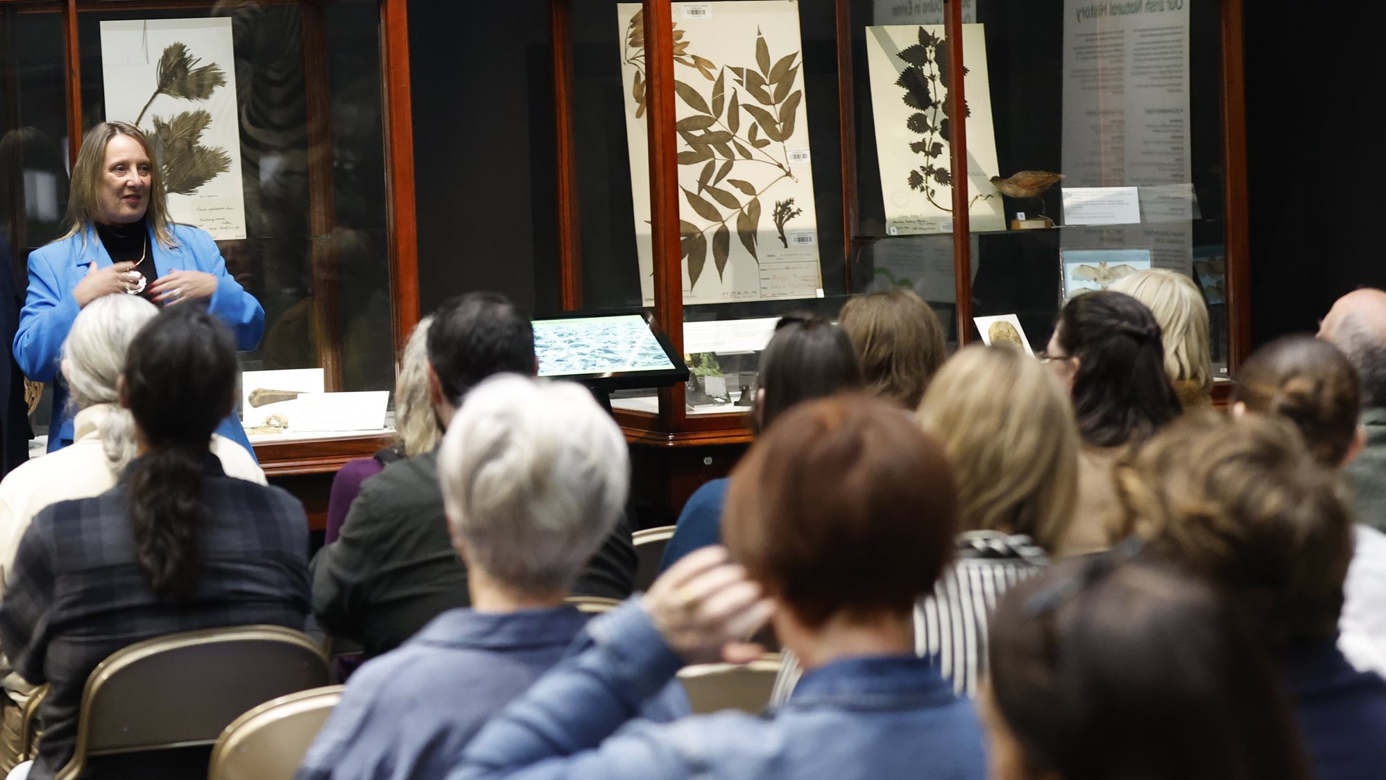 Above: Hazel Morrison, Moycullen Heritage Group, speaking at the launch of Our Irish Natural History in 'The Dead Zoo Lab'. Imabe: Julien Behal