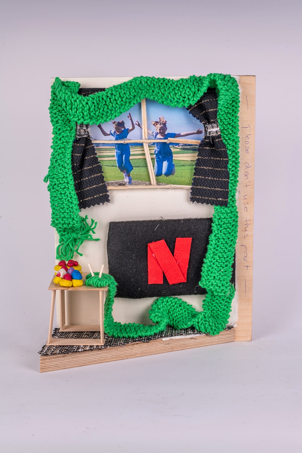 "My board is a very much a true representation of my life during lockdown. I spent a lot of time on my hobbies, which includes knitting. I watched countless box sets on TV and my partner baked me so many cakes! One of things I missed most was my family. They are represented by my two grandchildren the only way I could see them, through the window."
