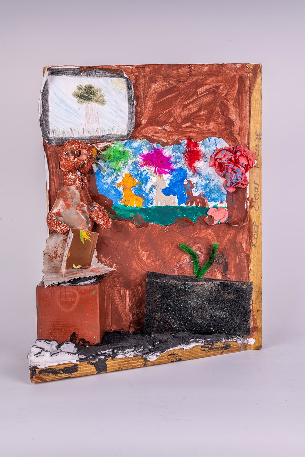 "In my board I wanted to express what I have been feeling during last year's lockdown. Isolated, scared, lost, alone, depressed and without a clear sight for my future. Losing myself and a year of my youth. From the whole world only seeing what's from my window and 5km. Forgetting the smiles of people and only seeing only their worried eyes. Missing the warm hugs and friendly handshakes and forgetting the smell of fresh air through a 3 layer surgical mask. My hands being burned and dry from the constant hand sanitizer. The saddest is the birthdays spent all alone with family without ice-skating, entertainment and zoos. Even the sunsets and sunrises have turned a different colour. I miss St. Patrick's parade. I want all of this to be over soon and to come back to our normal lives, without having to book an appointment to Penney's and doing church mass online. I feel like I'm not in control of my own life."